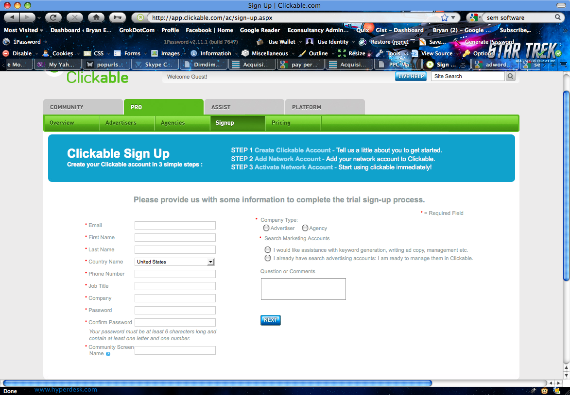 Here is an example of one of my favorite sign up forms. What does this form tell you about the company you are considering doing business with?