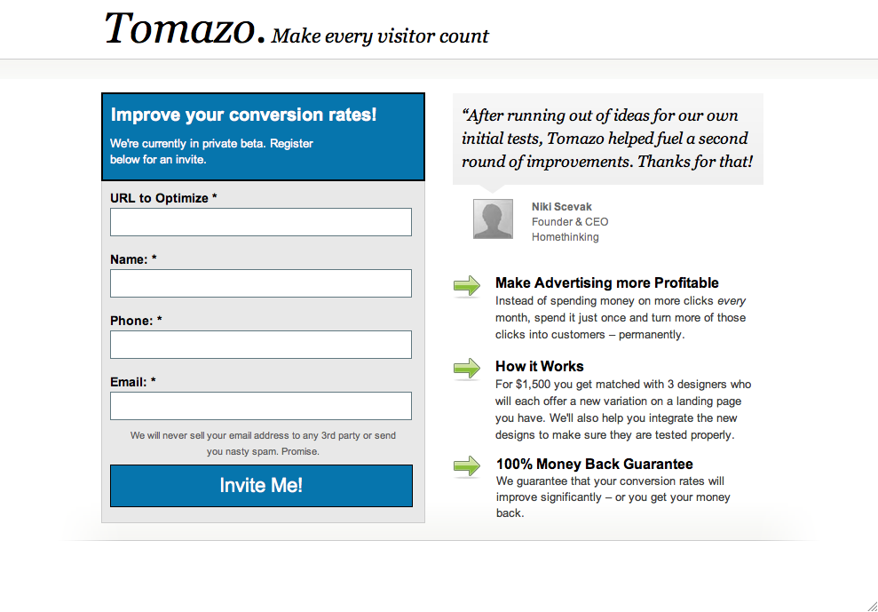 Let’s consider the following test which I found “in the wild” — and which I find ironic because it is for a service offering a marketplace of landing page designers.