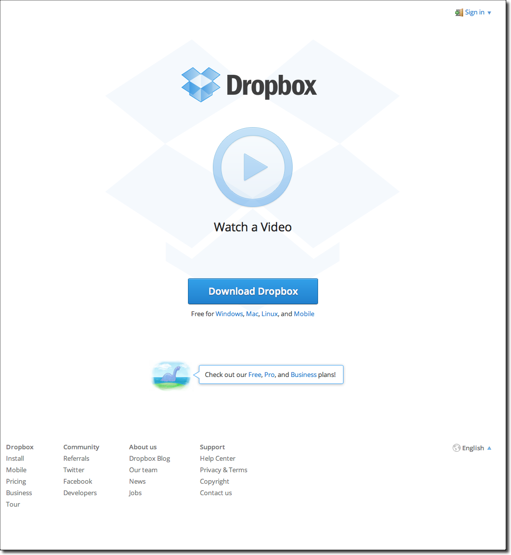 dropbox old home page