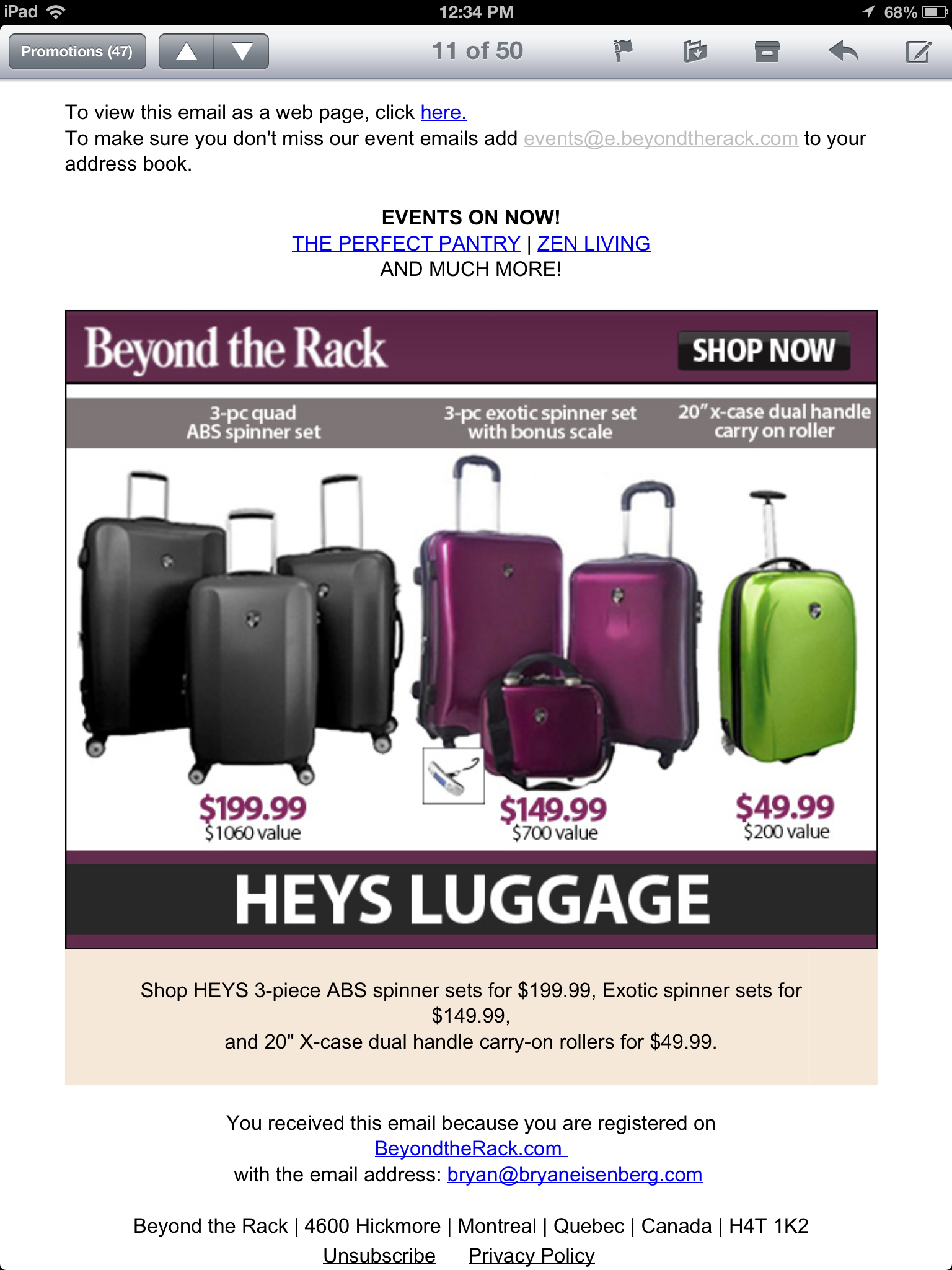 Frustrated at the state of email marketing. Decided I would look at some of the “promotional” emails whisked away from my Inbox and decided to click through to some of the landing pages. Only one who consistently does a good job is Land’s End. If I click on something in your email, take me to that thing on your landing page. Really, why is this so hard to get right?