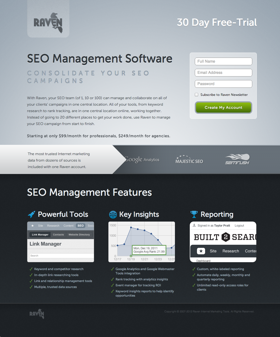 This week’s Conversion Optimization challenge is to look at a PPC ad I found on Google for the search term “SEO Management Software.”