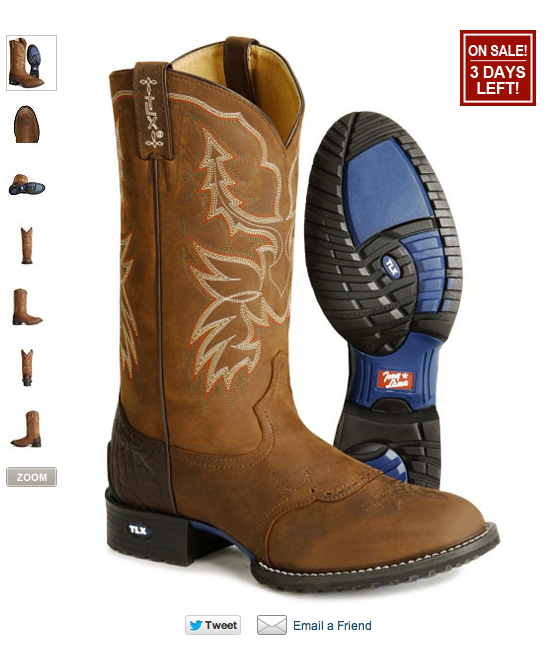 1. Take as many pictures of your products as possible. Take it from different angles. Include people using your product in images as well. Use the image to give context like this picture of a boot does by showing the boot and also the sole (great job Sheplers).