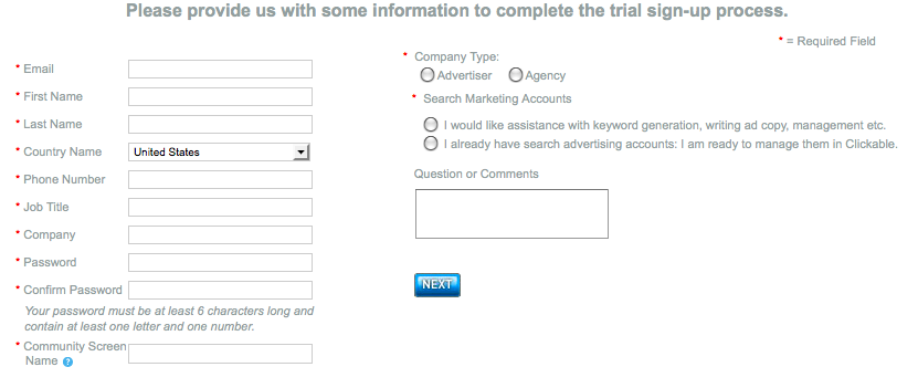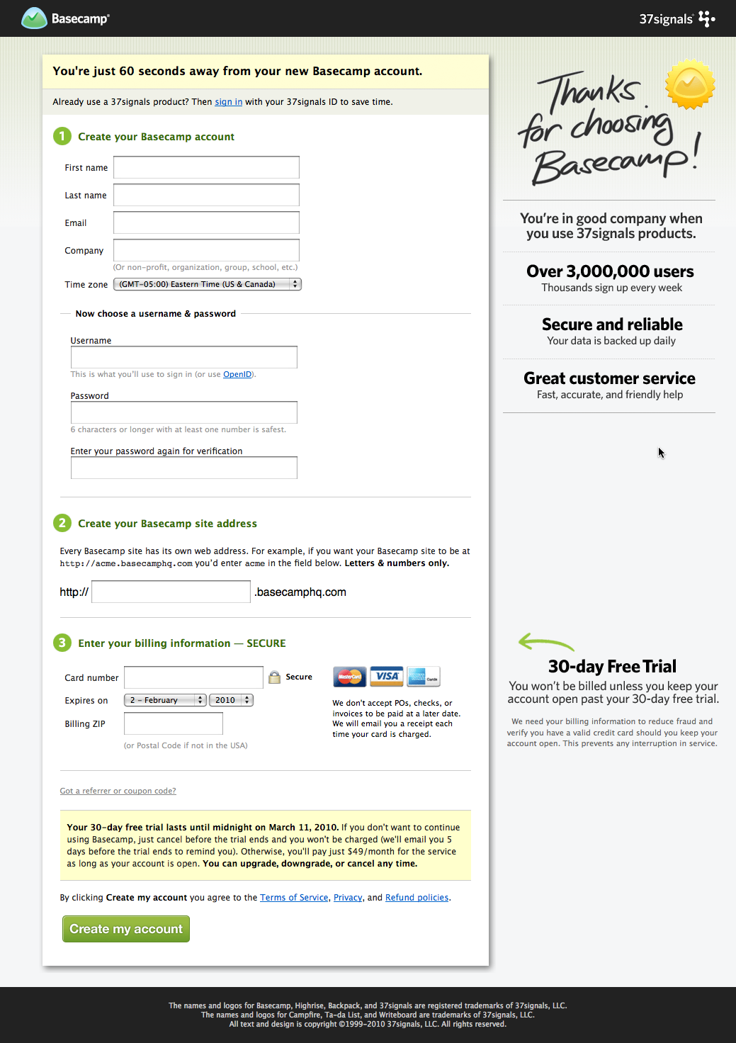 Here is an example of one of my favorite sign up forms. What does this form tell you about the company you are considering doing business with?