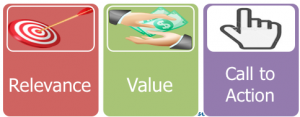 Headline and images are about relevance, body copy is about value, and form layout is about call to action.