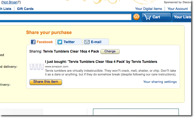 Would you have expected some sort of share ability on this wish list confirmation page or have I gotten share happy?